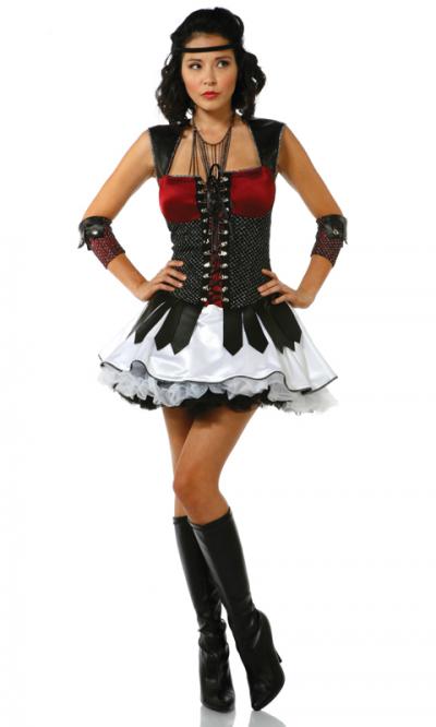 女戦士/勇者/ハロウィン/フロント編み上げコルセット風女戦士コスチューム3点セット 【フォープレイ/Forplay】 超本格的な、中世ヨーロッパの女戦士のコスチューム★超クールでかっこいい&セクシーのいいとこ取りなデザイン♪コルセット風のフロントでシルエットも超キレイ!!写真のようにペチコート(別売り)と組み合わせて、スカートをふんわりさせるスタイルがオススメ☆ハロウィンやパーティに目立っちゃおう!! <セット内容> ワンピース ヘッドバンド アームバンド ※ネックレス、ペチコートは含まれておりませんのでご了承ください。