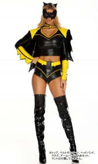 黒と黄色を合わせたとってもセクシーなバッドガールのコスチューム☆ コウモリの形をしたマスクがミステリアス! バッドマンに負けずにセクシーで強く、敵をやっつけましょう! ※靴とマントは含まれておりません。 【セット5点】 ?耳のついたヘッドバンド ?トップス ?ベルトのついたハイウエストショーツ ?マスク ?黄色のアームバンド