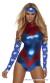 アメリカの国旗の色を使ったアメリカンヒーローのコスチューム☆ メタリックな色合いのボディースーツがとってもセクシー どんな敵でもかかってこい!セクシーな強さでやっつけちゃいましょう☆ ※ロングブーツは含まれておりません。 【セット2点】 ?アメリカ国旗カラーのボディースーツ ?星柄のバンダナ