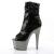 スチレットヒール 7 インチ (17.8 cm)、2 3/4 インチ (7 cm) のクローム メッキのプラットフォームののぞき見つま先ルーシュ シャフト足首ブート、ジッパー閉鎖中