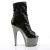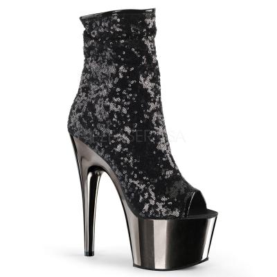 スチレットヒール 7 インチ (17.8 cm)、2 3/4 インチ (7 cm) のクローム メッキのプラットフォームののぞき見つま先ルーシュ シャフト足首ブート、ジッパー閉鎖中(PF Peep Toe Sequins Ankle Boot, Side Zip)