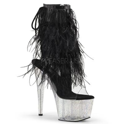 スチレットヒール 7 インチ (17.8 cm)、2 3/4 インチ (7 cm) プラットフォーム オープンつま先/小剣かかとレースアップ バック足首ブート搭載 4 層 UV ブラック ライト敏感な Marabou 毛皮フリンジ、ジッパー閉鎖中(PF Marabou Fur Fringe Ankle Boot, Side Zip)