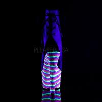 7"(17.8cm) ヒール、2 3/4"(7cm) PF オープンつま先またはかかとバックレース アップ足首ブート w/隠しジップ ポケット ジッパー閉鎖中覆われた全体の底 w/ネオン UV 反応性マルチカラー石の特徴
