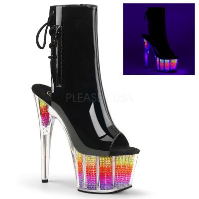隠しファスナー ポケット搭載ネオン UV 反応性、シミュレートされたラインス トーンいっぱいプラットフォームにより、ジッパー閉鎖中つま先/小剣かかとレースアップ バック足首ブートを開くスチレットヒール 7 インチ (17.8 cm)、2 3/4 インチ (7 cm) のプラットフォーム