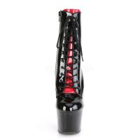 7 インチ (178 mm) かかと、w/舌互換色 (赤・黒) とプラットフォーム底面・ ジッパー閉鎖中、後ろでひもを結んでコルセット スタイル 2 3/4 インチ (70 mm) プラットフォーム 2 トーン レースアップ フロント足首ブート