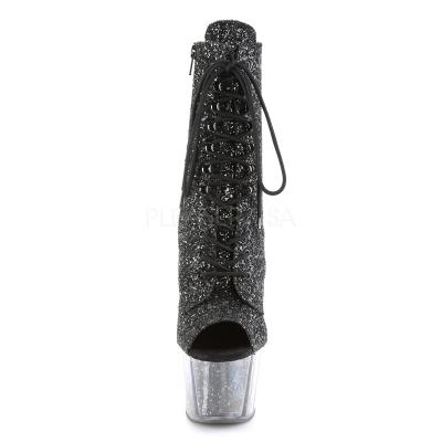 ◆ 7 インチ (178 mm) かかと、2 3/4 インチ (70 mm) キラキラいっぱいプラットフォーム レースアップ フロントのぞき見つま先の足首ブート、ジッパー閉鎖中フル ◆