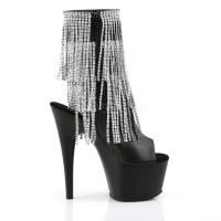 7 インチ (17.8 cm) スチレットヒール、2 3/4 インチ (7 cm) プラットフォーム オープンつま先/スティレット ヒール フリンジ足首ブート 3 層クロムメッキを特色シミュレート ラインス トーン フリンジ、ジッパー閉鎖中(PF Open Toe/Heel Ankle Boot, Side Zip)
