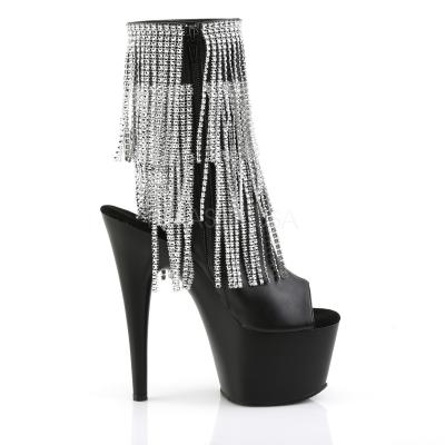 ◆ 7 インチ (17.8 cm) スチレットヒール、2 3/4 インチ (7 cm) プラットフォーム オープンつま先/スティレット ヒール フリンジ足首ブート 3 層クロムメッキを特色シミュレート ラインス トーン フリンジ、ジッパー閉鎖中 ◆