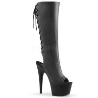 スチレットヒール 7 インチ (17.8 cm)、2 3/4 インチ (7 cm) プラットフォーム オープンつま先/小剣かかと後ろレースアップ ブーツ、側のファスナー(PF Open Toe/Heel Knee BT, Side Zip)