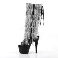 7 インチ (17.8 cm) スチレットヒール、2 3/4 インチ (7 cm) プラットフォーム オープンつま先/小剣かかとレースアップ ニーハイを起動 6 層模擬ラインス トーン フリンジ、ジッパー閉鎖中の特徴