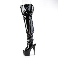 7""(178mm)ヒール、2 3/4"(70mm)プラットフォームストレッチオープントゥ/ヒールレースアップバック太ももハイブーツ、フルレンデインサイドジップクロージャー