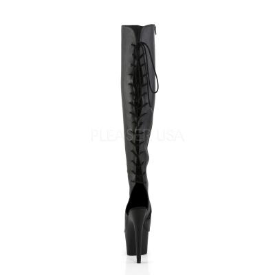 スチレットヒール 7 インチ (17.8 cm)、2 3/4 インチ (7 cm) プラットフォーム オープンつま先/小剣かかとバックレース アップ腿の高いブーツ、完全な側面のジッパー閉鎖