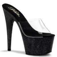 スチレットヒール 7 インチ (17.8 cm)、プラットフォーム 2 3/4 インチ (7 cm) スライド キラキラ カバー下部の特徴(PF Slide Featuring Glitter Covered Bottom)