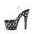 AB のひし形のラインス トーンで装飾されたスチレットヒール 7 インチ (17.8 cm)、2 3/4 インチ (7 cm) プラットフォーム アンクルス トラップ サンダル プラットフォーム全体の特徴