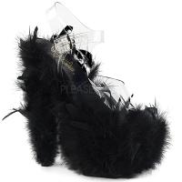 7 インチ (178 mm) かかと、プラットフォーム全体の下部を覆う Marabou 羽 w/2 3/4 インチ (70 mm) プラットフォーム アンクルス トラップ サンダル(PF Marabou Feather Ankle Strap Sandal)