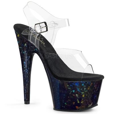7 インチ (178 mm) かかと、2 3/4 インチ (70 mm) プラットフォーム アンクルス トラップ サンダル ホログラフィック搭載粉々 にプラットフォーム全体の底上のパターン(PF Ankle Strap Sandal w/ Shatter Effect)