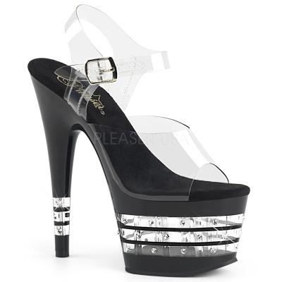 7 インチ (178 mm) かかと、2 3/4 (70 mm) プラットフォーム足首ストラップ サンダル特徴ラインス トーンをちりばめた並んでプラットフォーム底(Lined PF Ankle Strap Sandal w/ RS)