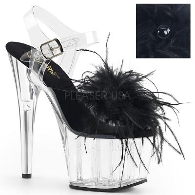 7 インチ (178 mm) かかと、2 3/4 インチ (70 mm) プラットフォーム アンクルス トラップ サンダル Marabou 羽パフ パール飾り w/魔性の女の特徴(PF Ankle Strap Sandal w/ Feather Pearl)