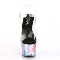 7 インチ (178 mm) かかと、2 3/4 インチ (70 mm) プラットフォーム アンクルス トラップ サンダル メタリック ローズ プリント プラットフォーム底の特徴(PF Ankle Strap Sandal w/ Rose Print)