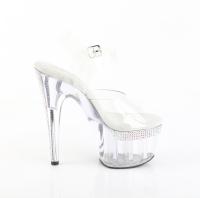 7インチ(178mm)ヒール、2 3/4インチ(70mm)プラットフォームアンクルストラップサンダル、プラットフォームのトップエッジとヒールの裏側にABラインストーンがちりばめられています(PF Ankle Strap Sandal w/ RS Lines)