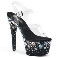 7"(17.8 cm) スチレットヒール、2 3/4 インチ (7 cm) プラットフォーム アンクルス トラップ サンダル AB ラインス トーン ローズを備え設計プラットフォーム上(PF Ankle Strap Sandal w/ Rose Patterns)