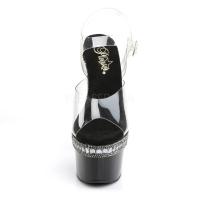 7 インチ (17.8 cm) スチレットヒール、2 3/4 インチ (7 cm) プラットフォーム アンクルス トラップ サンダル プラットフォーム ・ スティレット ヒールにラインス トーン装飾を備え