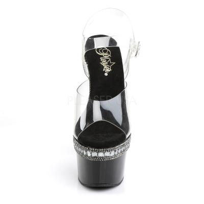 7 インチ (17.8 cm) スチレットヒール、2 3/4 インチ (7 cm) プラットフォーム アンクルス トラップ サンダル プラットフォーム ・ スティレット ヒールにラインス トーン装飾を備え(PF Ankle Strap Sandal w/RS Embellishment)