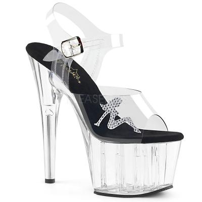 7 インチ (178 mm) かかと、2 3/4 インチ (70 mm) プラットフォーム アンクルス トラップ サンダル ラインス トーンを備え装飾上のトラック運転手の女の子