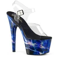 7 インチ (178 mm) かかとは、2 3/4 インチ (70 mm) プラットフォーム アンクルス トラップ サンダル ホログラフィック ライトニング ボルト印刷の特徴ラップ プラットフォーム底(PF Ankle Strap Sandal w/Lightning Bolt Print)