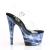 7 インチ (178 mm) かかとは、2 3/4 インチ (70 mm) プラットフォーム アンクルス トラップ サンダル ホログラフィック ライトニング ボルト印刷の特徴ラップ プラットフォーム底