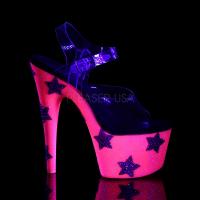 スチレットヒール 7 インチ (17.8 cm)、2 3/4 インチ (7 cm) プラットフォーム アンクルス トラップ サンダル UV 反応性ミニを備えキラキラ マルチカラー星とプラットフォームをカバー(PF UV Reactive Ankle Strap Sandal W/Stars)