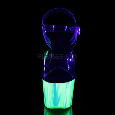 7 インチ (17.8 cm) スチレットヒール、2 3/4 インチ (7 cm) 紫外線反応性プラットフォーム アンクルス トラップ サンダル(UV Reactive PF Ankle Strap Sandal, Cnd Grn)