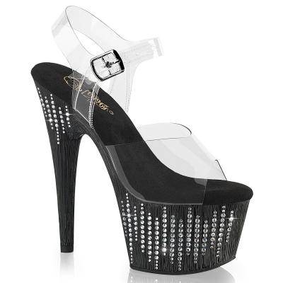 7インチ(178mm)ヒール、2 3/4インチ(70mm)プラットフォームアンクルストラップサンダル、プラットフォームとヒールの外側にラインストーンの滝模様のデザインが特徴(PF Ankle Strap Sandal w/ Sprinkle RS)
