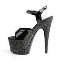 7 インチ (17.8 cm) スチレットヒール、2 3/4 インチ (7 cm) プラットフォーム アンクルス トラップ サンダル プラットフォーム全体のミニの虹色のきらめきを搭載(PF Ankle Strap Sandal w/Mini Glitter)