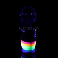 7 インチ (178 mm) かかと、2 3/4 の (70 mm) プラットフォームの足首のストラップのサンダル特徴ネオン UV 反応性の虹色のプラットフォーム下
