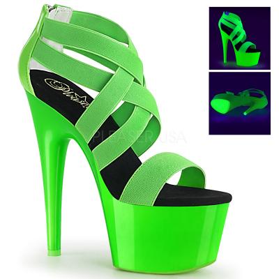 7 インチ (178 mm) かかと、2 3/4 インチ (70 mm) プラットフォーム縦横クロス サンダル全体上、プラットフォーム底アウトソール/Toplift UV ブラック ライト反応の特徴(PF UV Reactive Criss Cross Sandal, Back Zip)