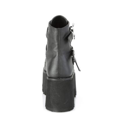 3 1/2""(90mm)チャンキーヒールカットアウトプラットフォームアンクルブーツ3スタッドバットバックルストラップ(Chunky Heel, Cut Out PF Ankle Boot)