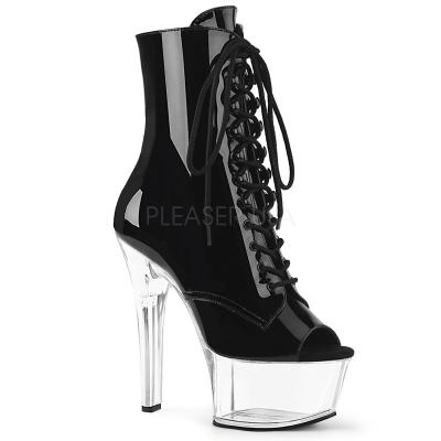 6 インチ (152 mm) かかと、2 1/4 インチ (57 mm) プラットフォームを開くジッパー閉鎖中のつま先レースアップ フロント足首ブート(PF Open Toe Lace-Up Ankle Boot, Side Zip)