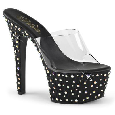 6 インチ (15.2 cm) ヒール、2 1/4"(5.7 cm) プラットフォーム スライド全室ビーガン革中敷と底にちりばめられた複数サイズのラインス トーン(PF Vegan Friendly Slide)