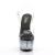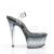 6 インチ (152 mm) かかと、2 1/4 インチ (57 mm) プラットフォーム アンクルス トラップ サンダル ヒールとプラットフォーム底の外側側面にちりばめられた複数サイズのラインス トーンの特徴