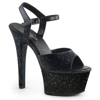 6 インチ (152 mm) かかと、2 1/4 インチ (57 mm) プラットフォーム アンクルス トラップ サンダル全体上部・ プラットフォーム下にミニ虹色の光るを搭載(PF Ankle Strap Sandal W/ Mini Glitters)