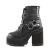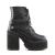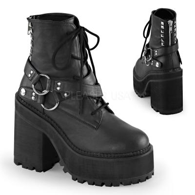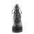 4 3/4"(12.1 cm) ヒール ブロック、2 1/4"(5.7 cm) クリート プラットフォーム編み上げ足首の外側に、半分スタッズ バック ジッパー全室ダブル D リング付きストラップ スナップオン ラップアラウンドを起動します。