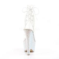 6 1/2 インチ (16.5 cm) ヒール、2 3/4 インチ (7 cm) プラットフォーム オープンつま先またはかかとレースアップ バック ウェッジ足首のトランクリッドにラインス トーンのちりばめられたすべてウェッジ下、ジッパー閉鎖中