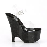 6 1/2 インチ (16.5 cm) 2 3/4 インチ (7 cm) プラットフォーム アンクルス トラップ ウェッジ サンダル プラットフォーム全体の下部を備え、かかとは、ミニのホログラムのきらめき w/ほこりを払った