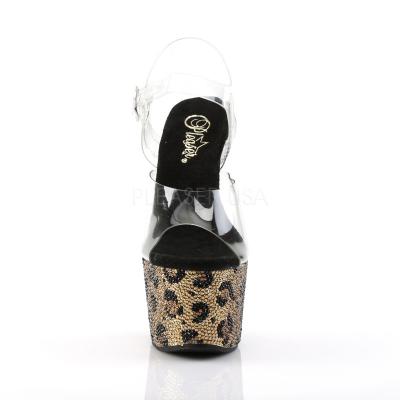 7 インチ (17.8 cm) ヒール、2 3/4 インチ (7 cm) プラットフォーム アンクルス トラップ サンダル ラインス トーン ヒョウの皮パターンで装飾された全体のプラットフォームを搭載(PF Ankle Strap Sandal w/Leopard Pattern RS)