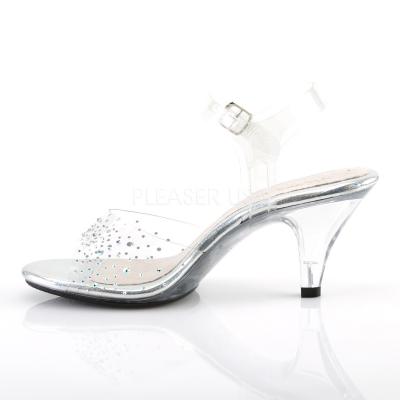 3 インチ (7.6 cm) ヒール、1/8"(0.3 cm) プラットフォーム アンクルス トラップ サンダル特長マルチ サイズ ヴァンプに虹色のラインス トーン(PF Ankle Strap Sandal W/ AB RS)
