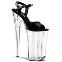 10 インチ (25.4 cm) ヒール, 6 1/4"(15.9 cm) プラットフォーム足首ストラップ サンダル警告: 極端なハイヒール。ウォーキングやダンスは推奨されません。
