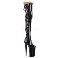 ジッパー閉鎖中 10 インチ (25.4 cm) ヒール、6 1/4"(15.9 cm) プラットフォーム側スリット リボン編み上げの腿の高いブーツ、全長(PF Side-Slit Thigh High Boot, Side Zip)