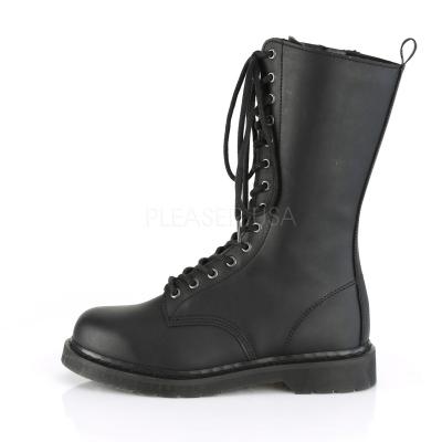 1 1/4 インチ (32 mm) 積層フラットかかと 14 ハトメ編み上げジッパー閉鎖中のバックのプルタブの w/ふくらはぎユニセックス ビーガン ブート半ば(Heel 14-Eyelet Mid Calf Unisex Vegan Boot, Side Zip)