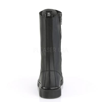 1 1/4 インチ (32 mm) 積層フラットかかと 14 ハトメ編み上げジッパー閉鎖中のバックのプルタブの w/ふくらはぎユニセックス ビーガン ブート半ば(Heel 14-Eyelet Mid Calf Unisex Vegan Boot, Side Zip)